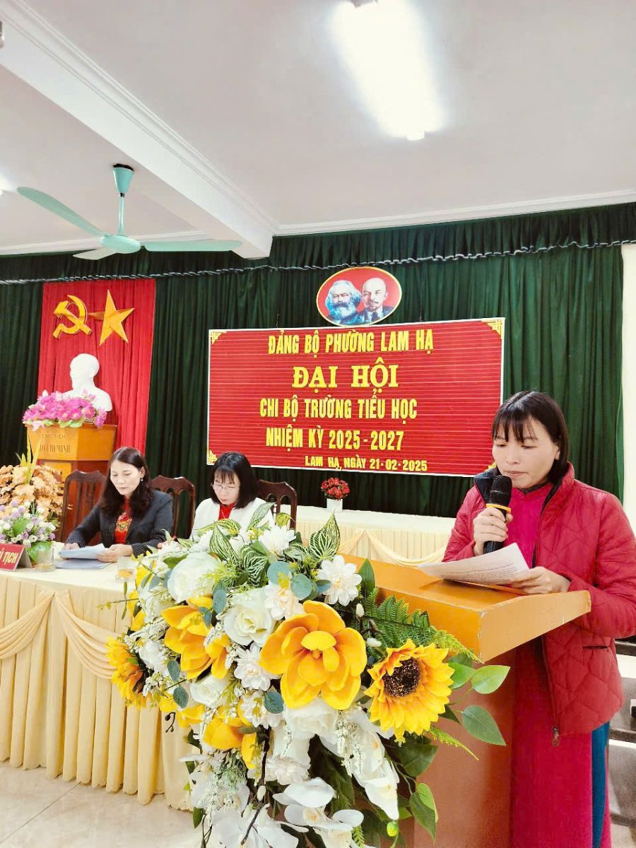 Chiều ngày 21/02/ 2025, Chi bộ trường TH Lam Hạ tổ chức Đại hội Chi bộ nhiệm kỳ 2025-2027. Đại hội vinh dự đón tiếp đồng chí Trịnh Xuân Lành – Uỷ viên ban Thường vụ Đảng ủy, Phó Chủ tịch UBND phường cùng các đ/c Ủy viên BCH Đảng ủy phường. Phát biểu chỉ đạo tại Đại hội, đ/c Trịnh Xuân Lành đã ghi nhận kết quả thực hiện nhiệm vụ của Chi bộ và định hướng giao nhiệm vụ cho Chi bộ trong nhiệm kỳ mới.